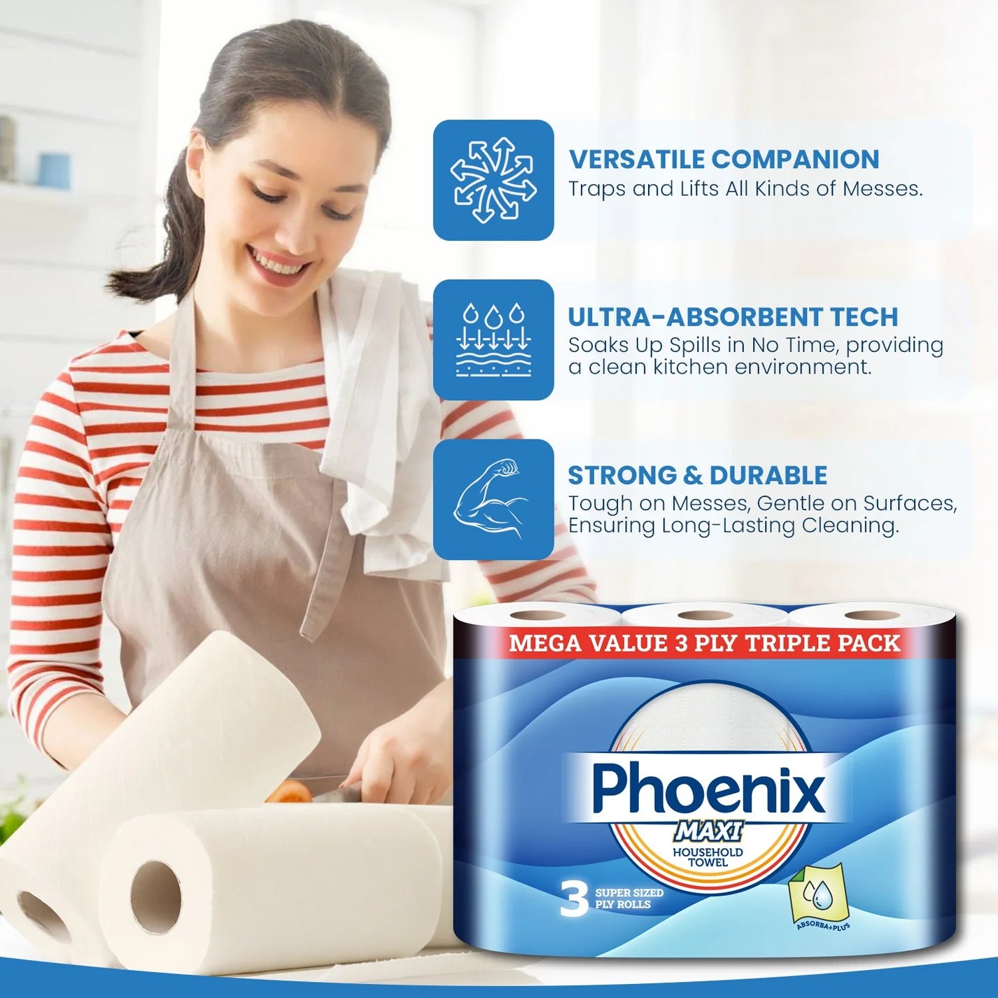 Yes. MAXI towels use a 3-ply triple-layer design that makes them significantly stronger, more absorbent, and more durable than typical supermarket rolls, meaning fewer sheets per clean-up.